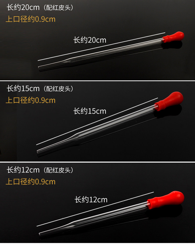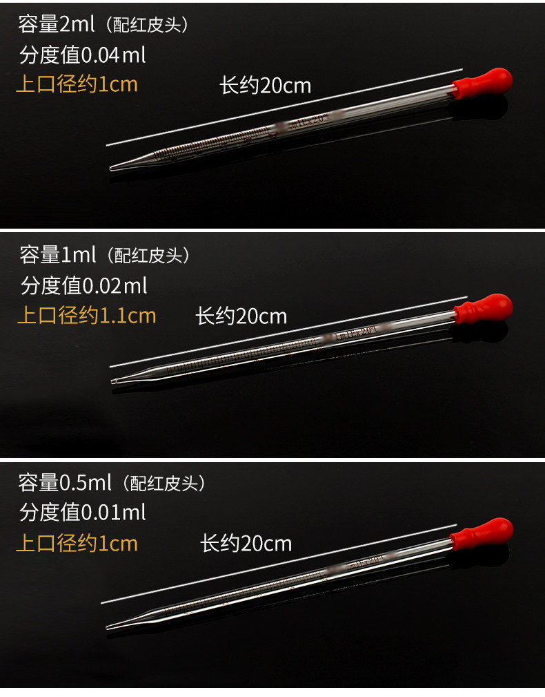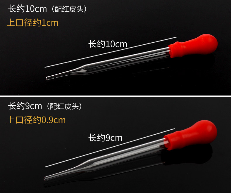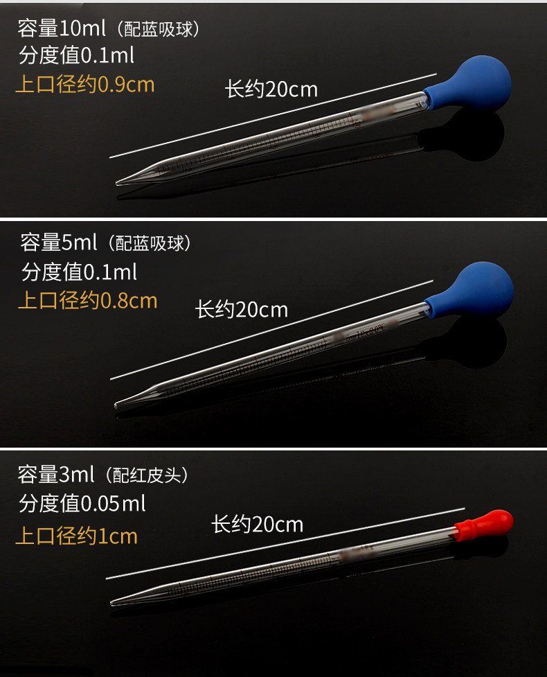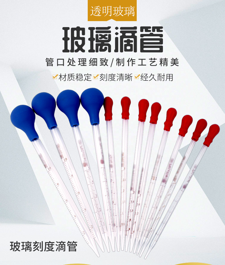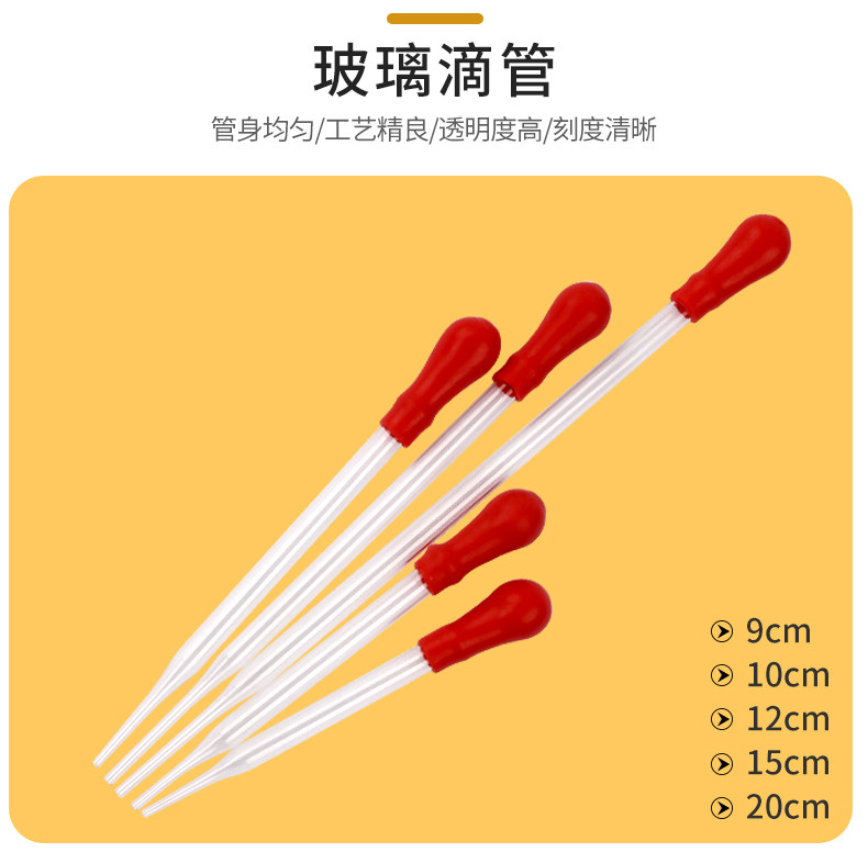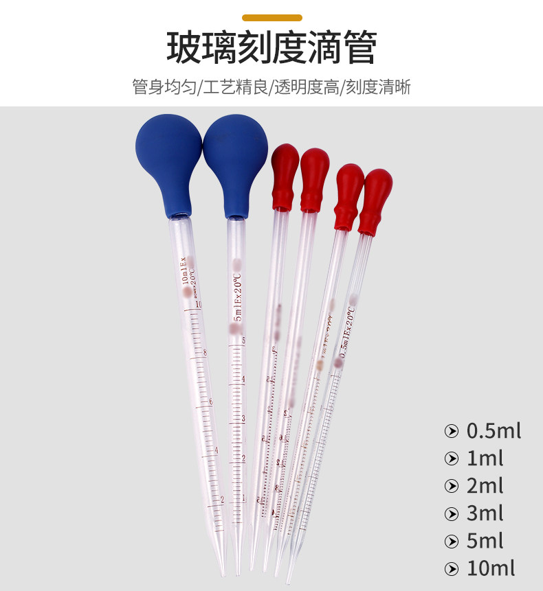 Glass graduated dropper with rubber suction ball chemical experiment equipment 0.5ml1ml2ml3ml5ml10ml multi-specification rubber head dropper with graduated straw pipette