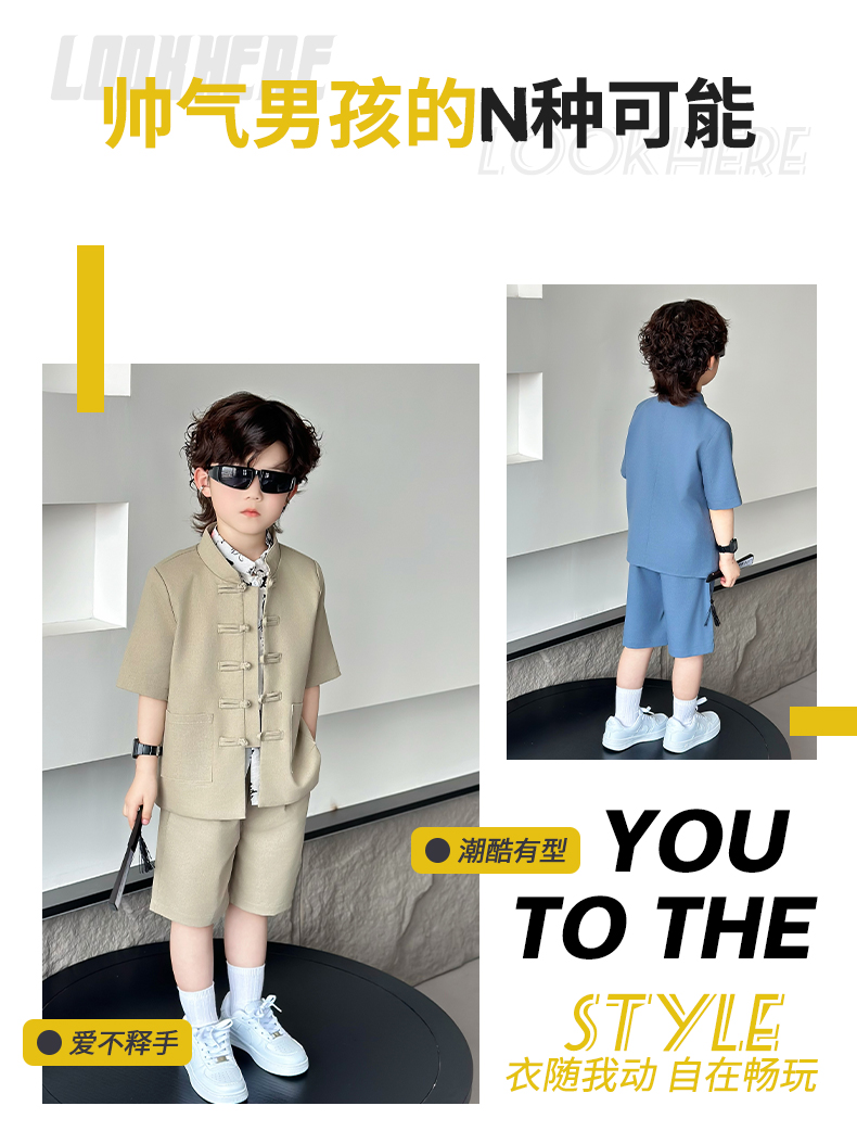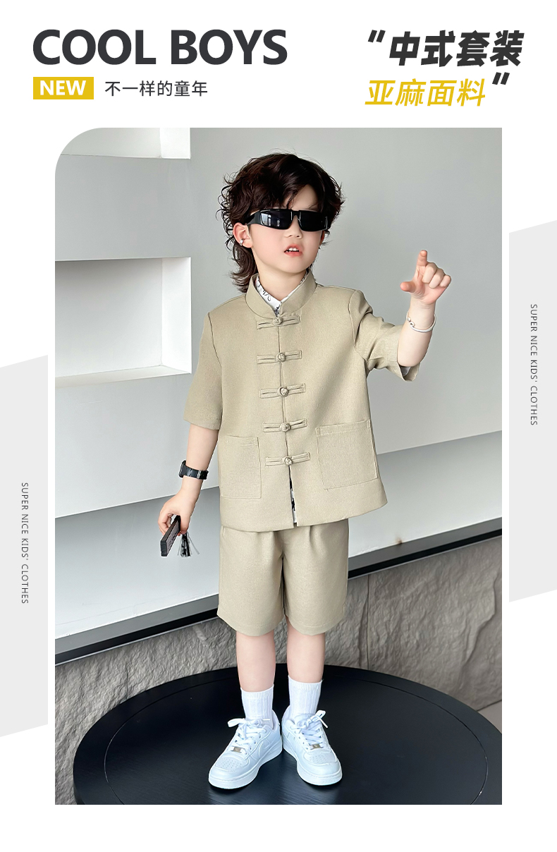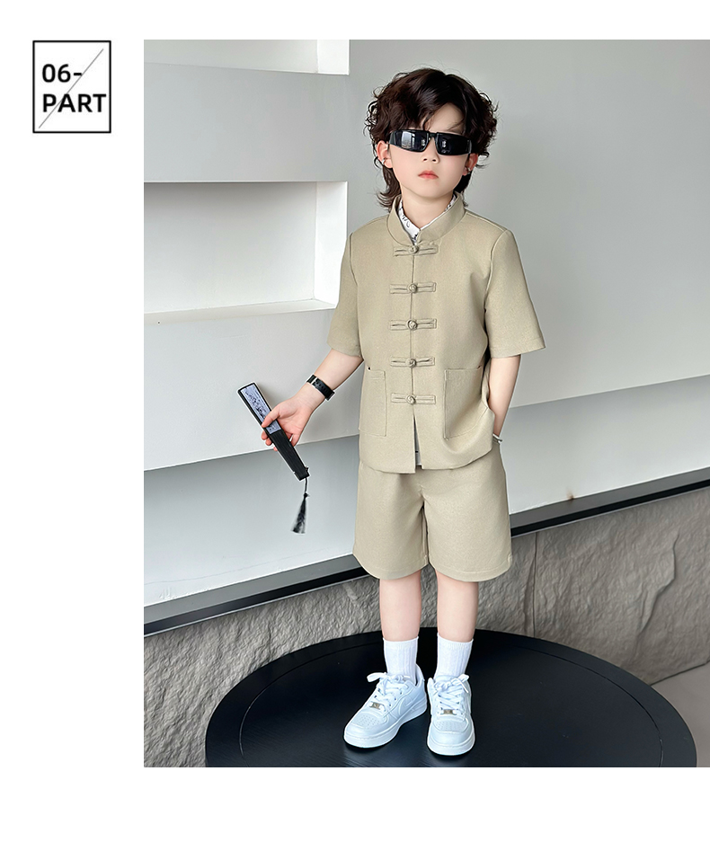 Children's Chinese-Style Suit, Thin Linen Boys' Formal Wear, Tang Suit, Traditional Chinese Style Boys' Zhongshan Suit, Children's Day Host Performance Costume