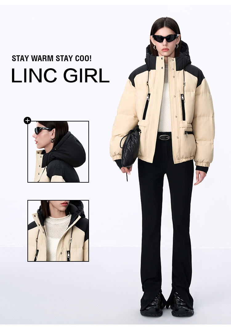 LINC Jin Yujie 2025 winter new hooded functional protective short down jacket for women Y24801246