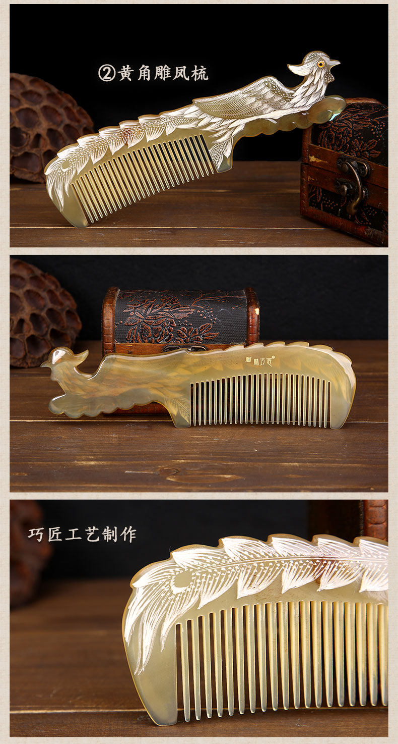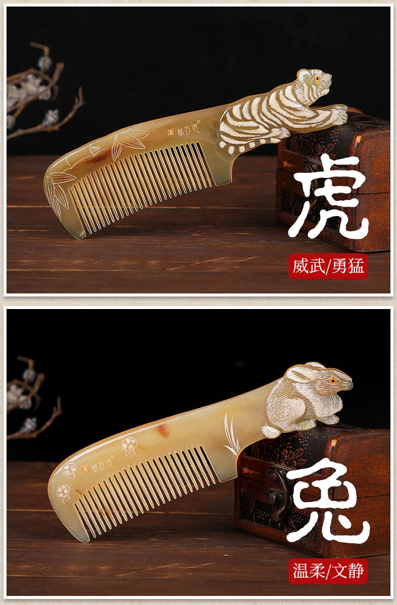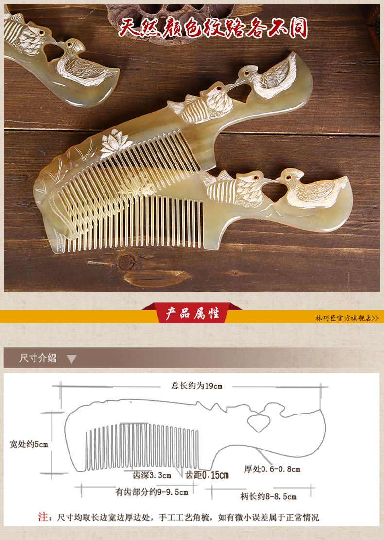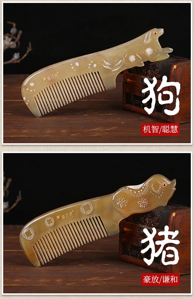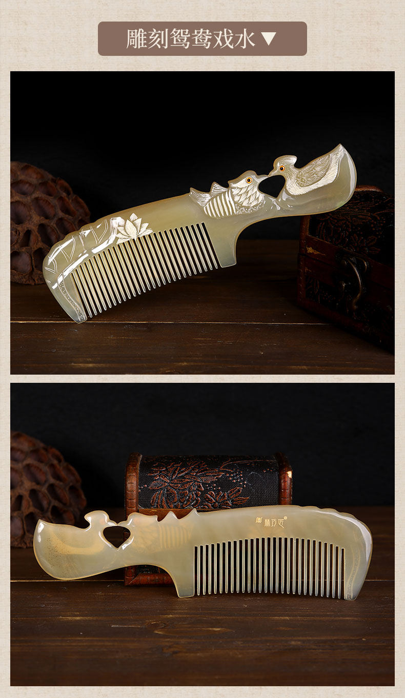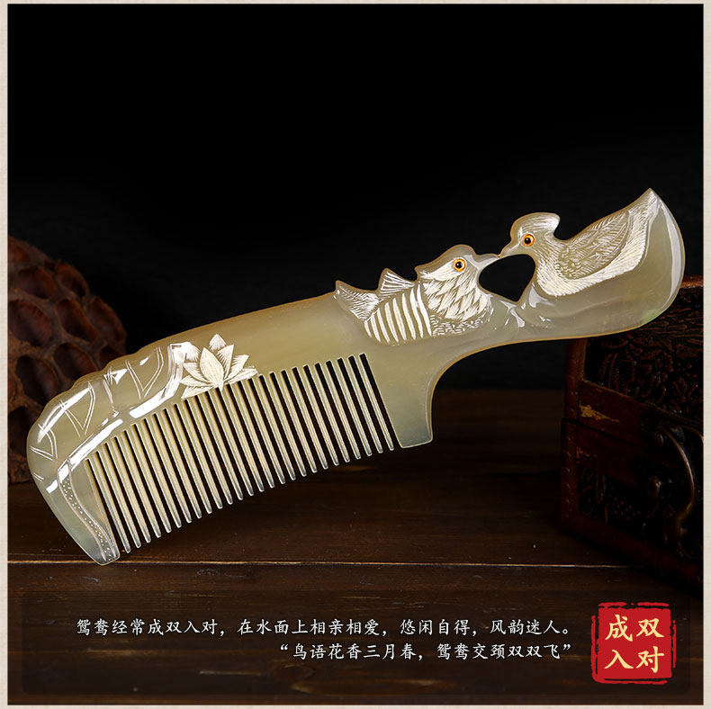 Authentic natural horn comb zodiac comb hand-carved mandarin duck Valentine's Day gift for women home wedding gift