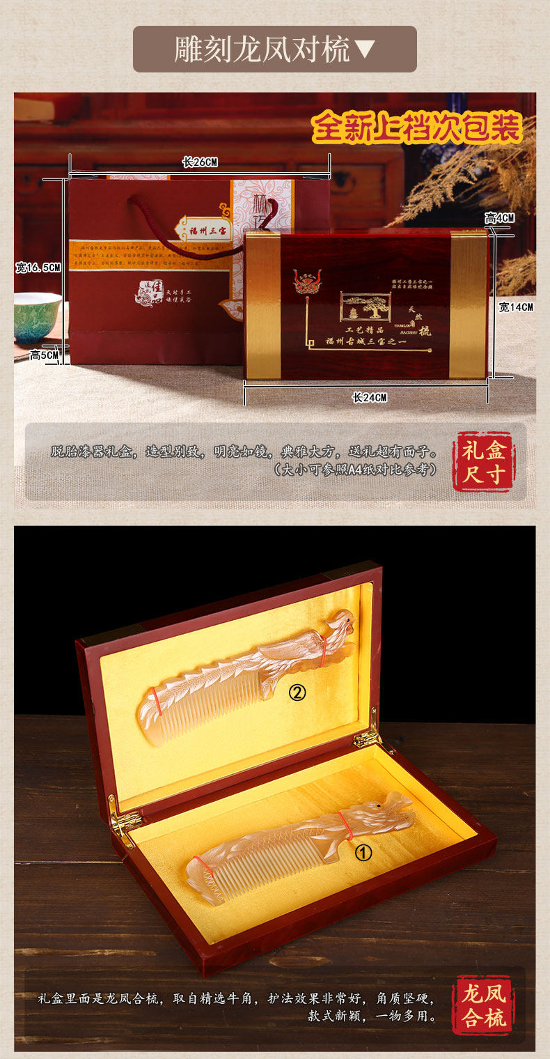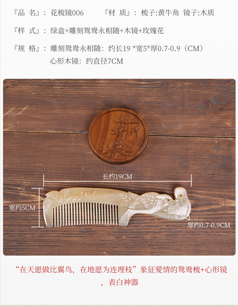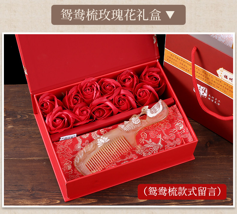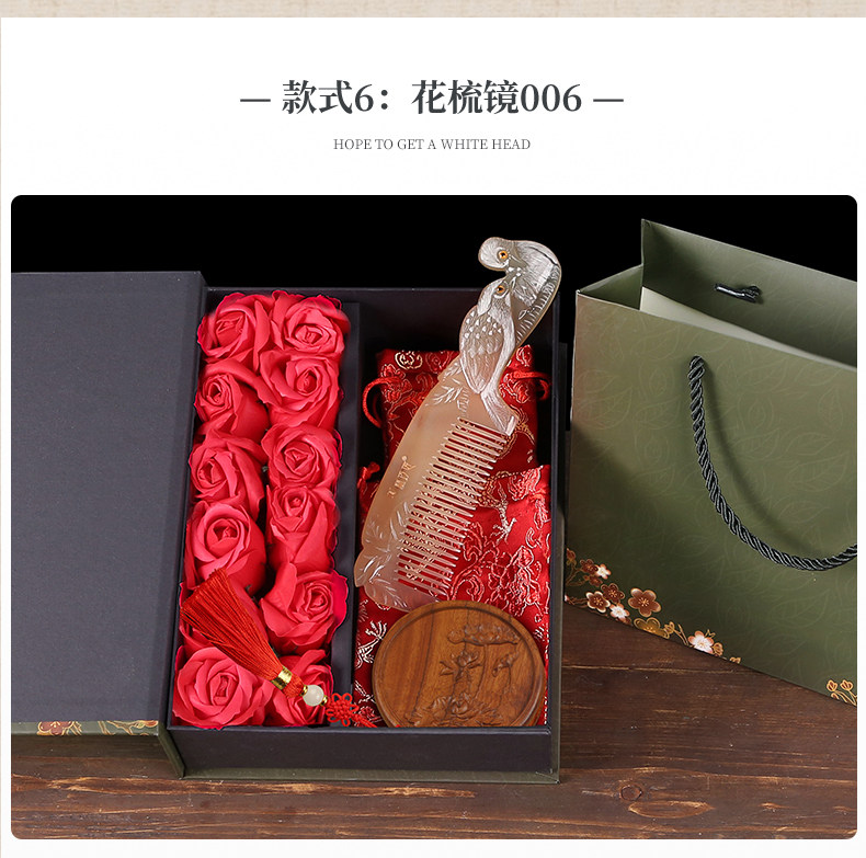 Sort by color Carving with handle - Mandarin ducks playing in the water,Carving with handle - Mandarin ducks will always be with you,Handled carving-Phoenix,Handled carving - rat,Handled carving - cow,Carved with handle - tiger,Carved with handle - rabbit,Handled carving-dragon,Handled carving-snake,Handled carving - horse,Handled Carving-Sheep,Handled carving - monkey,Handled carving - chicken,Handled carving-dog,Handled carving - pig,Carved with handle - lotus,Red gift box with roses, carved Yuanyang comb + roses (Leave a message for which style Yuanyang wants),Red rose gift box, engraved zodiac comb with handle + rose (which zodiac sign do you want to leave a message for),Green gift box with roses, mandarin ducks will always be with you + wooden mirror + roses,Bodiless lacquerware wooden gift box, carved dragon and phoenix comb set of two,Red gift box with roses, Yuanyang comb + hollow metal mirror + roses (Yuanyang leaves a message for which style you want, the mirror pattern is random),Red gift box with roses, engraved zodiac comb with handle + hollow metal mirror + roses (which zodiac sign you want to leave a message on, the mirror pattern is random),Red gift box with roses, carved mandarin ducks + wooden mirror + roses,Red gift box with roses, carved mandarin ducks always with you + peacock metal mirror + roses