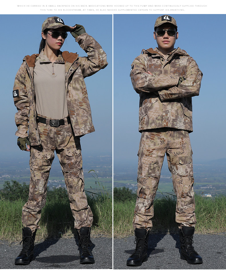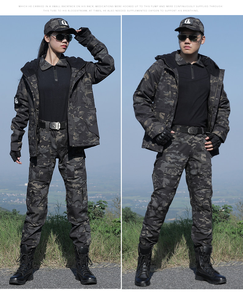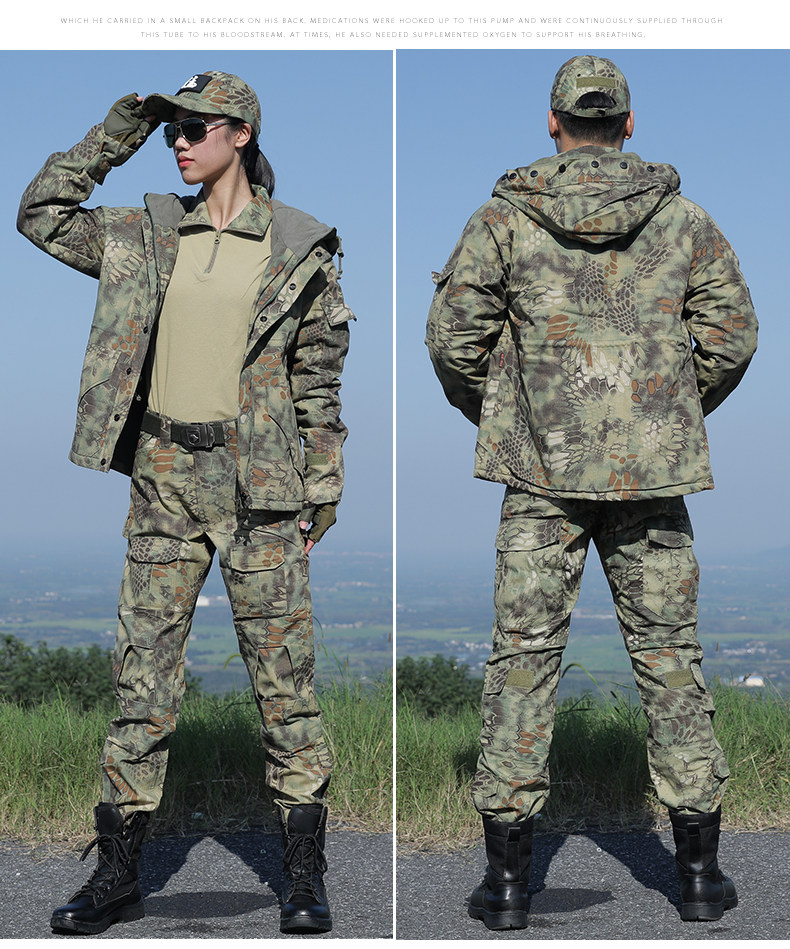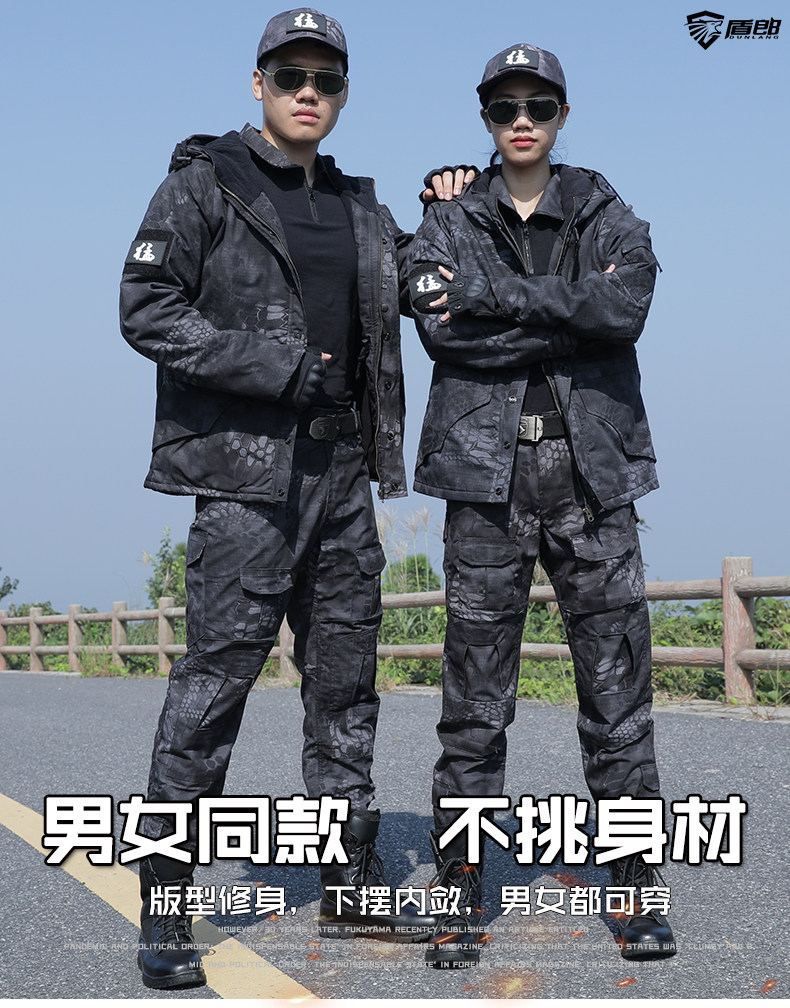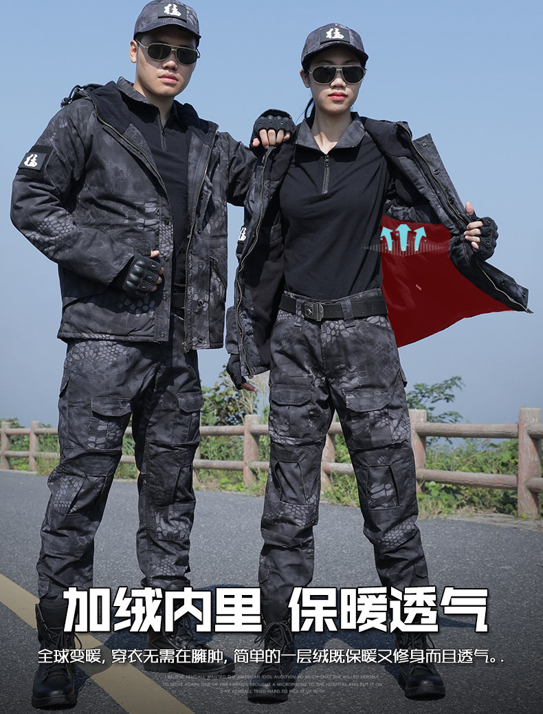 New Outdoor Autumn and Winter Fleece-Lined Python-Pattern Camouflage Suit for Men, Military Training Performance Security Uniform, Women's Thickened Work Clothes