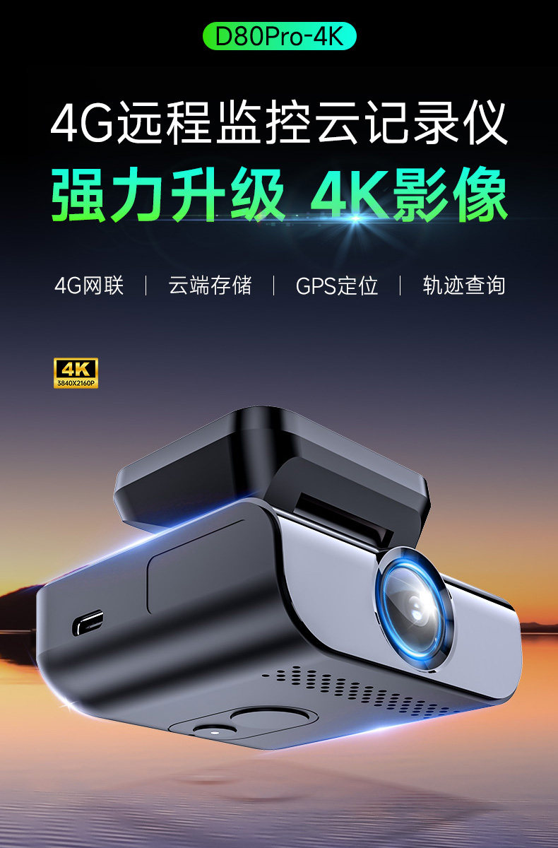 Weilute D80Pro Driving Recorder 4g Remote Monitoring with Gps Positioning, Dual Recording Inside and Outside, Parking Monitoring 4K
