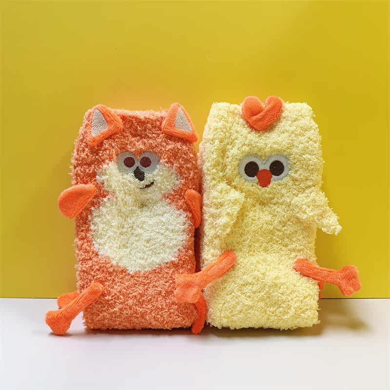 Miniso famous brand dundunji home socks for women winter warm cartoon cute coral velvet floor socks