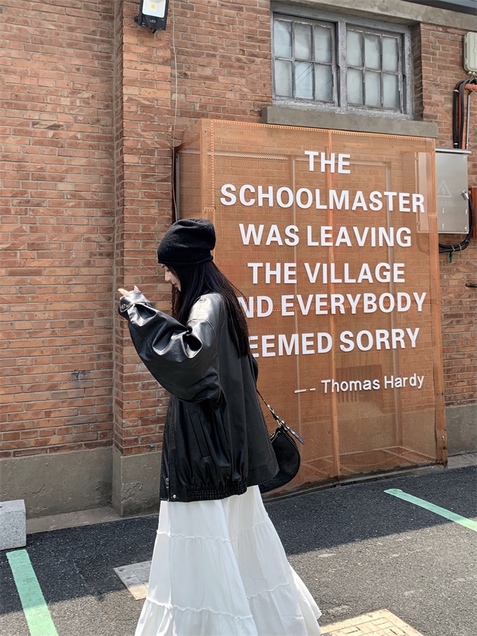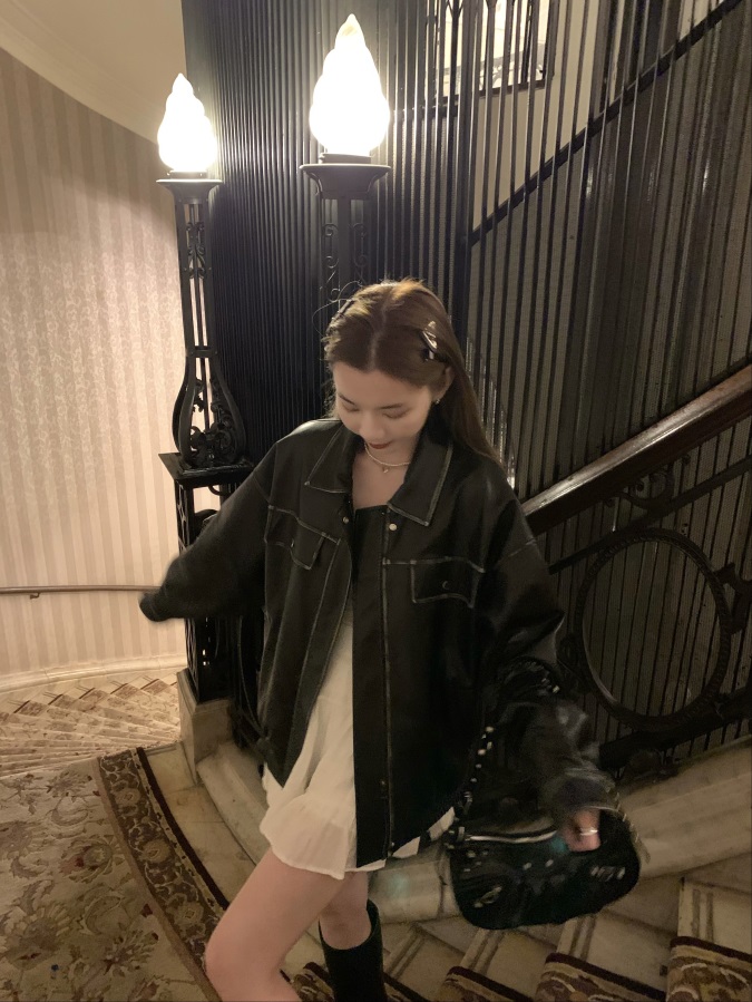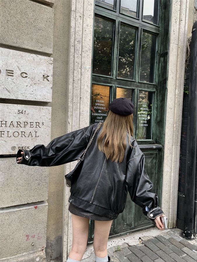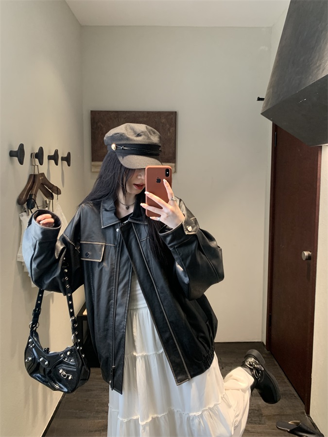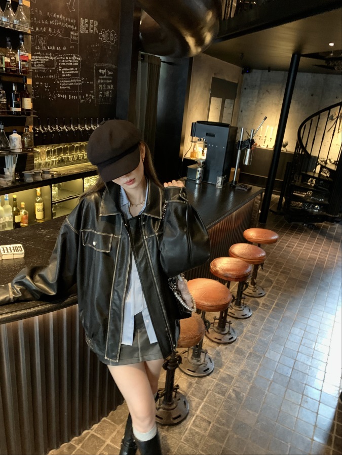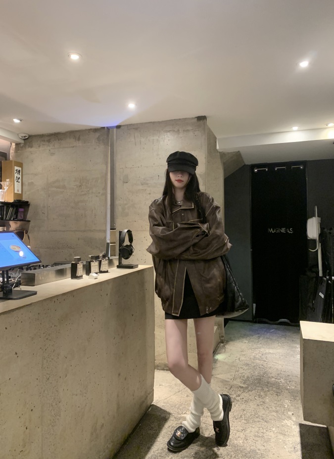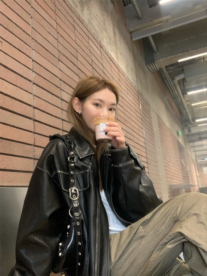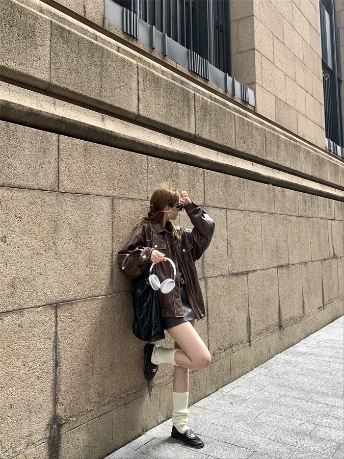 Yige Buye Brown Leather Jacket for Women, High-End Spring and Autumn Design, Vintage Loose Short Casual Jacket