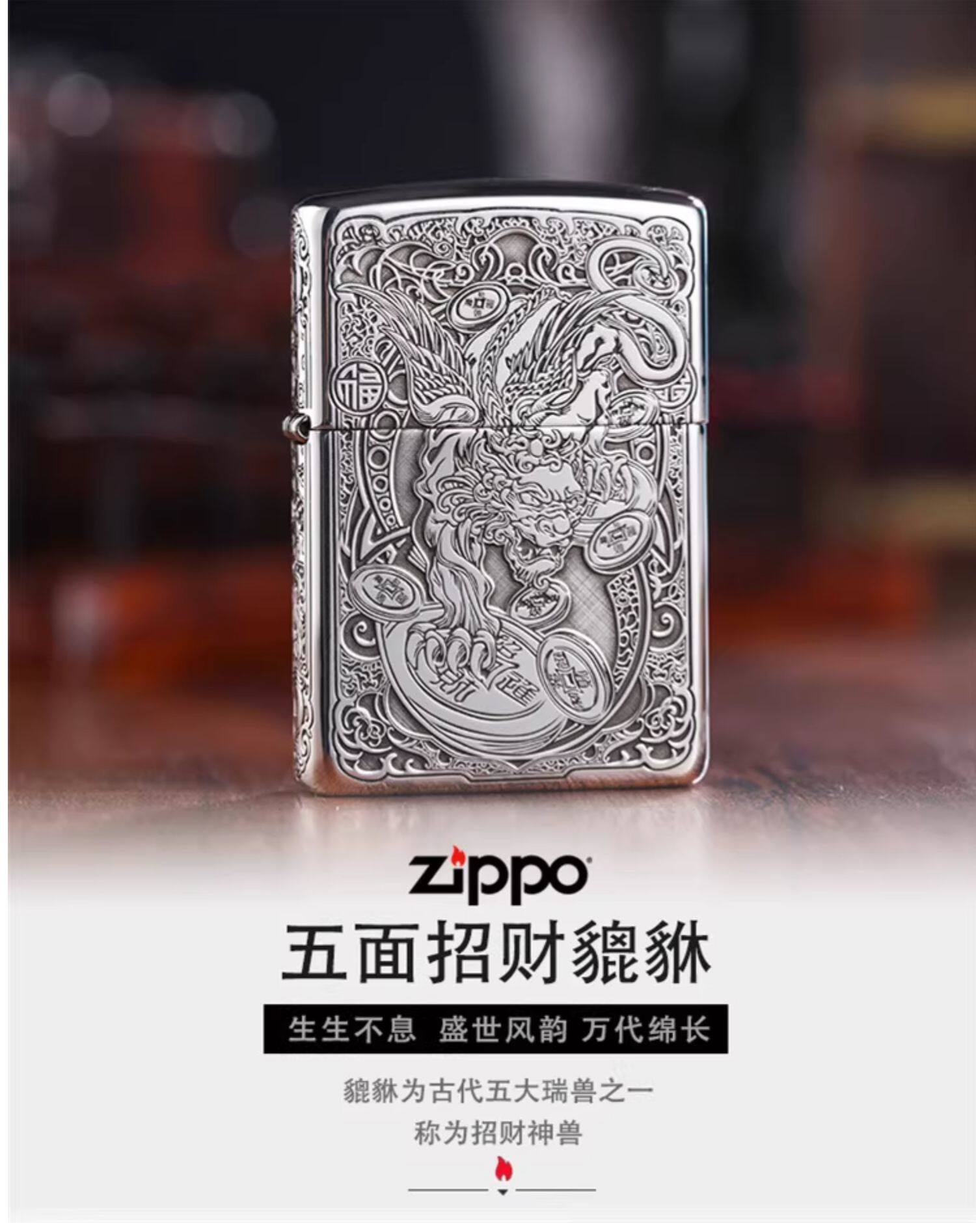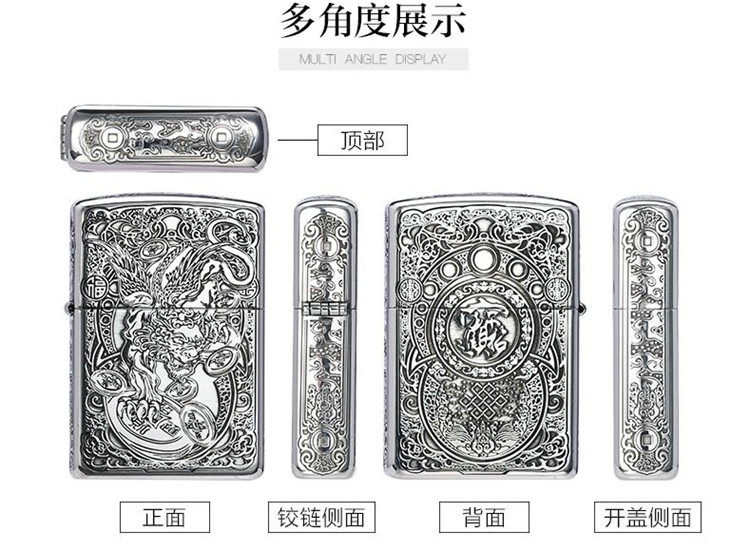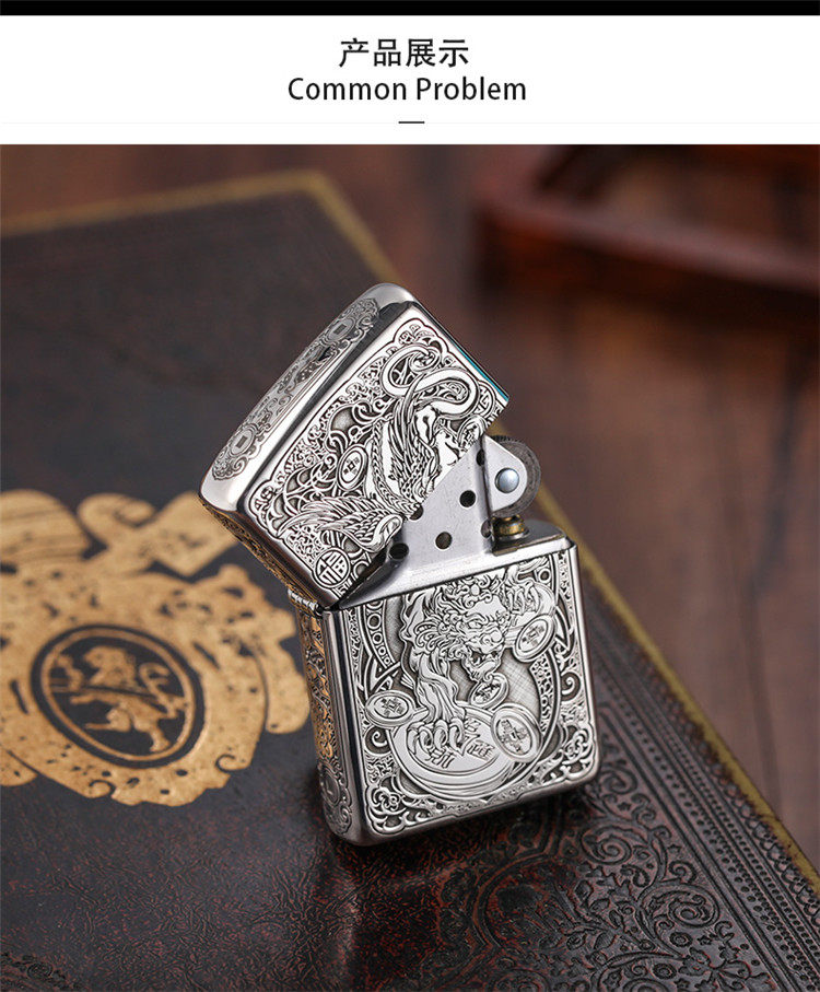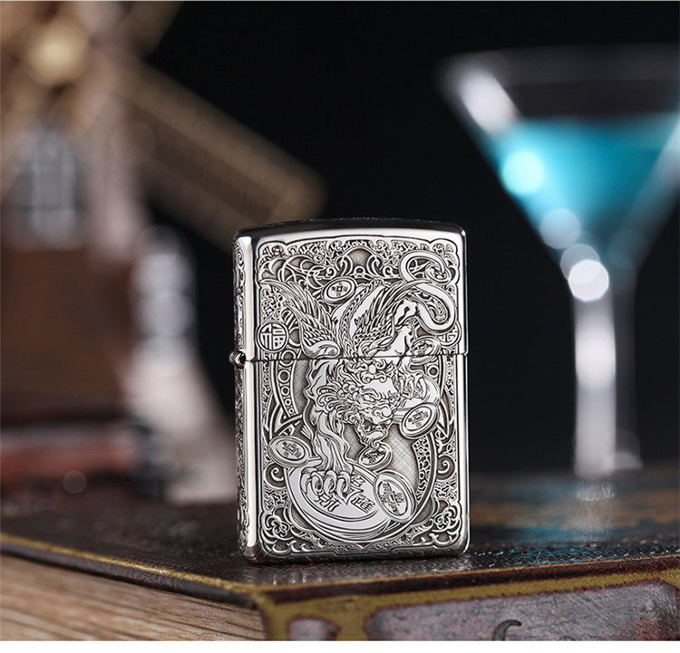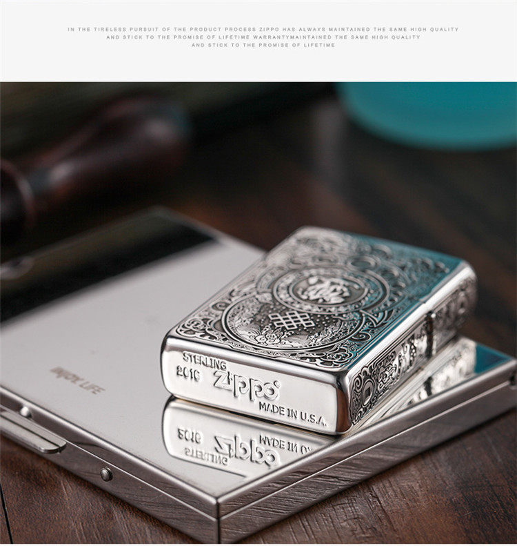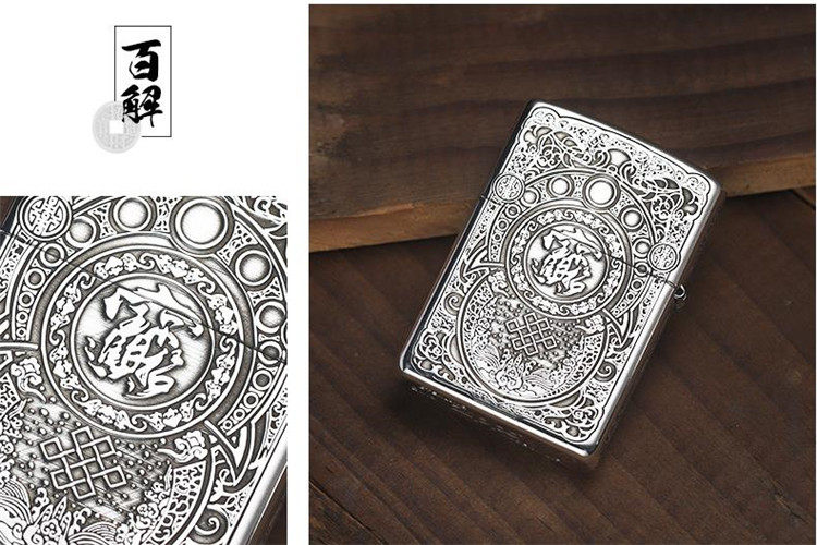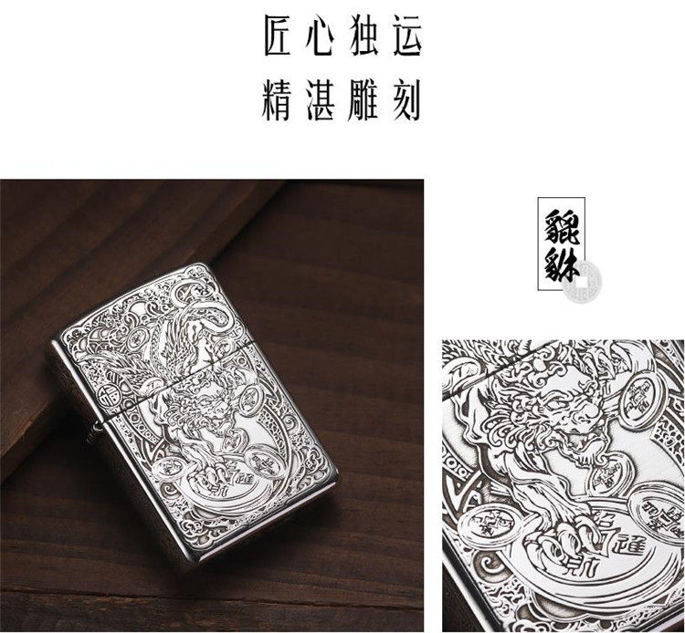 Genuine zippo lighter sterling silver lucky pixiu american original zppo genuine men's lettering gift collection